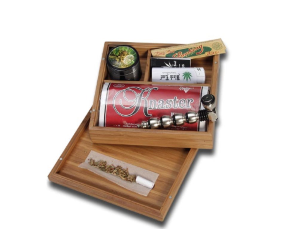 Krabice na kuřácké potřeby Stoner Box od Black Leaf vyrobená z bambusu s magnetickým uzávěrem. Pro uložení a skladování kuřáckých potřeb. Po odklopení se víko nasadí na podstavec a lze jej použít jako podložku.