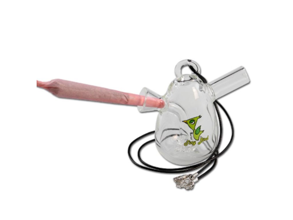 Tento malý mini bong značně zpříjemní život každému kuřákovi. Tiny Bird od Black Leaf lze použít jako mini bong, one-hitter i jako joint bubbler! Tento malý bubbler je vyroben z vysoce kvalitního borosilikátového skla. Měří pouhých 6,5 centimetru a má popruh na krk, takže si ho můžete vzít kamkoli. Naplňte ho vodou a dejte trochu trávy do misky, abyste ho mohli používat jako one-hitter. Nebo vložte joint či blunt do určeného otvoru a použijte ho jako joint bubbler. Tiny Bird má skrytou sprchovou hlavici. Ta ochlazuje kouř a také skvěle vypadá. Otvor pro kohoutek poskytuje intenzivní závan při kouření. Tiny Bird je multifunkční mini nástroj pro každého kuřáka!