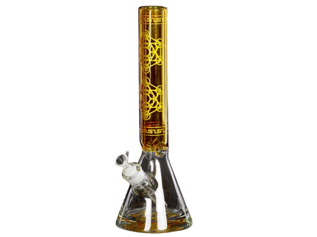 Nové bongy Amsterdam Limited Edition jsou vyrobeny z vysoce kvalitního borosilikátového skla, základna skla má tloušťku 22 mm a je tvarováno do speciálního kádinkového tvaru. Dodává se s štěrbinami na chillumu. Bong je vysoký 40 cm a sklo a chillum mají tloušťku 18,8 mm. Dodává se s nástavci na led, do kterých se vejdou kostky pro ochlazení kouře. Tento bong má příjemný úchop a snadno se bere kamkoli, vejde se do cestovní tašky!