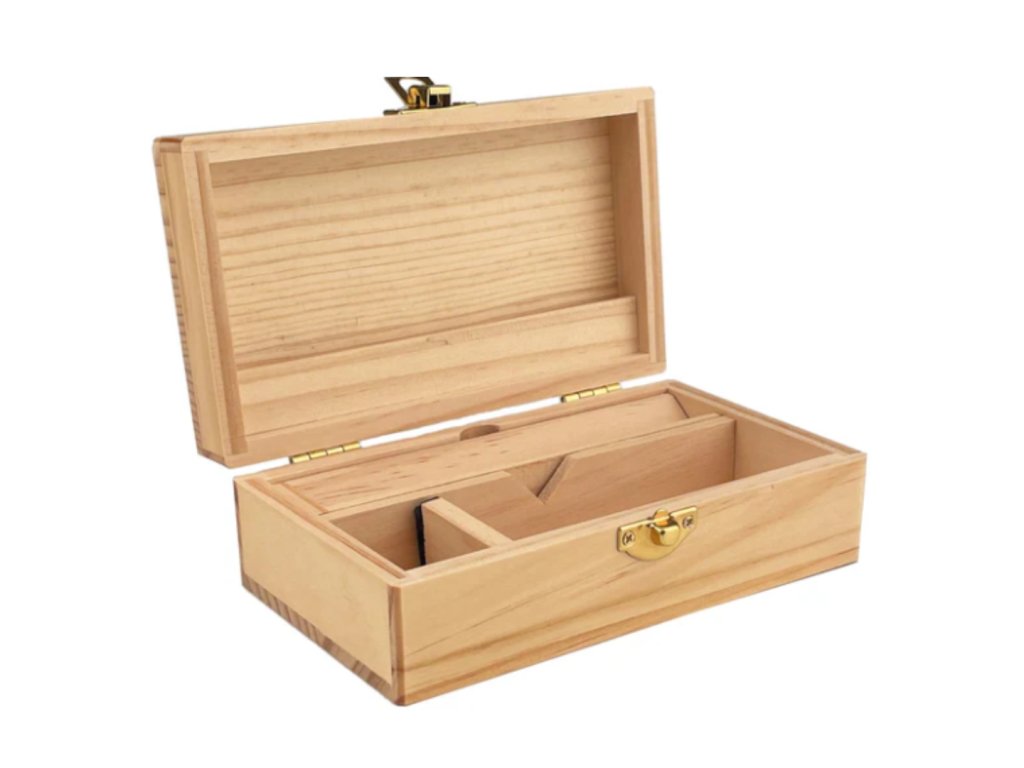 Uspořádejte si kuřácké potřeby v této praktické krabici na balení cigaret! Obsahuje držák na cigaretový papír, misku na drobky, otevřenou přihrádku a dělicí přepážku. Krabice je 16 centimetrů dlouhá, 9 centimetrů široká a 5 centimetrů vysoká. Je vyrobena ze dřeva a má pevný kovový uzávěr.