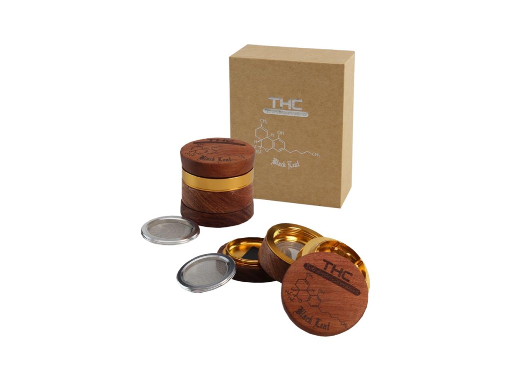 Tato luxusní čtyřdílná drtička kombinuje stylové dřevěné tělo s pevným hliníkovým jádrem, takže ti vydrží roky. Uvnitř se ukrývají extrémně ostré zuby, které si poradí i s těmi nejhouževnatějšími bylinkami. Nechybí ani jemné sítko, které zachytí ten nejlepší pyl, a magnetické zavírání, aby se tvůj poklad nikam nerozsypal. Navíc tě potěší stylové vygravírované logo THC na víčku!