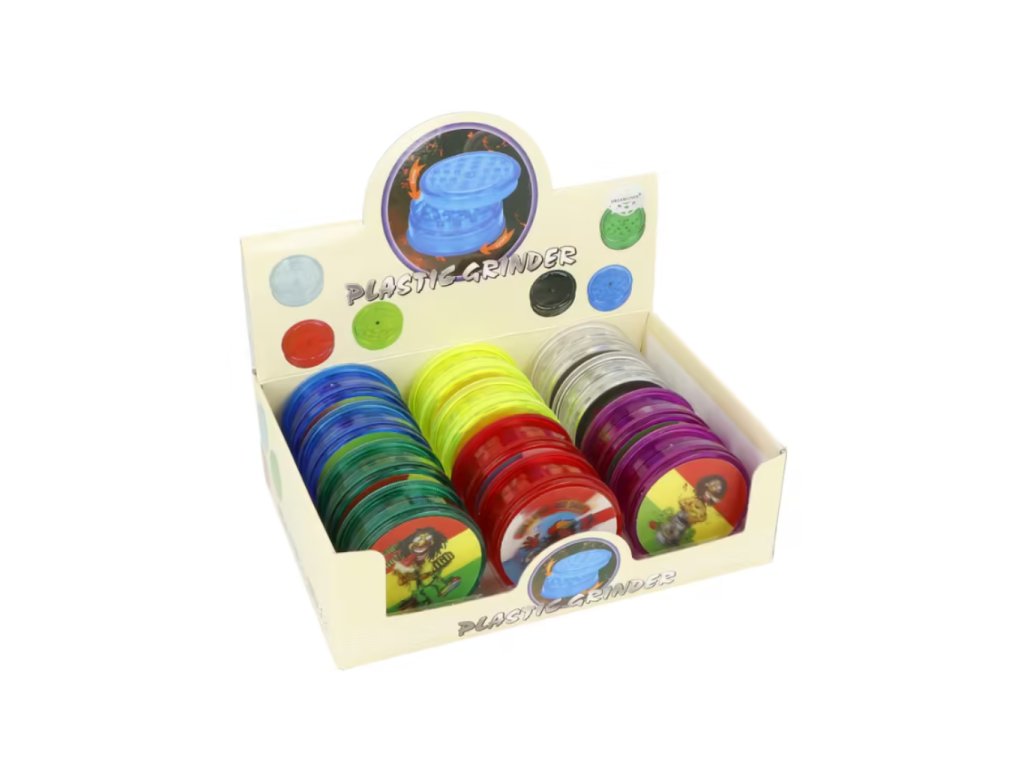 Plastová drtička na konopí, tabák, a jiné bylinky. Dvojdílný drtič Hemp v barevném transparentním provedení je spojený na magnet. Horní strana drtiče je zdobená motivem Cannabis. Ostří ve tvaru diamantu jemně nadrtí směs do požadované hrubosti.