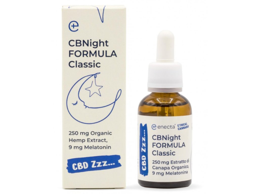CBNight konopný olej obsahuje (v 1 ml) 0,3 mg melatoninu a 8,35 mg konopného extraktu. Kromě primární funkce navození a udržení spánku, pro kterou je tento olej určen, má CBNight Formula analgetické a protizánětlivé vlastnosti díky samotné povaze kanabinoidů obsažených v oleji. Přítomnost CBD navíc pomáhá v případech úzkosti a chronického stresu, snižuje hladinu fyzického a svalového napětí.
