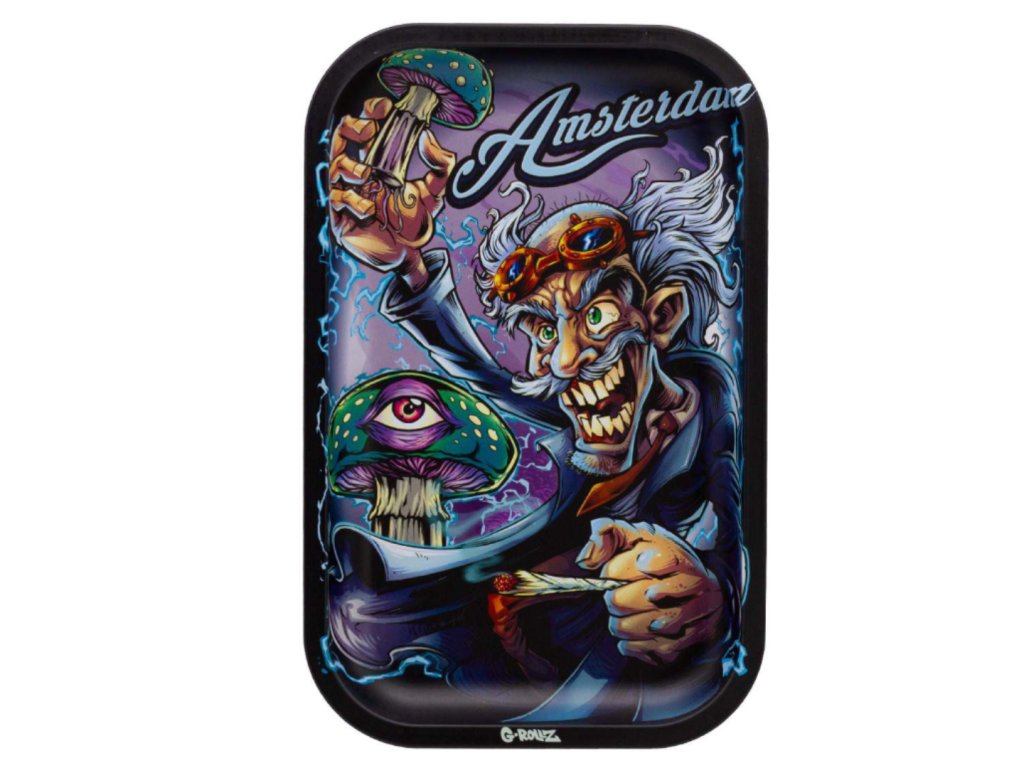 vysoce kvalitní kovový podnos praktické velikosti s originálními grafikami.