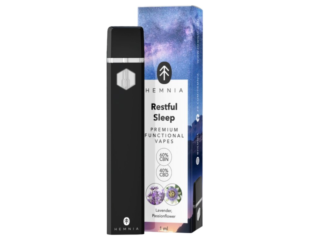 Hemnia Prémiové funkční vaporizační pero Restful Sleep – 40 % CBD. 60 % CBN, levandule, mučenka, 1 ml