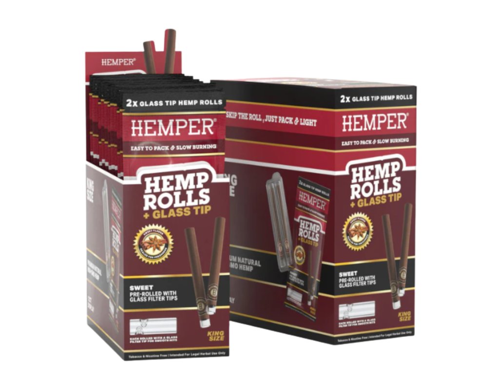 HEMPER Natural Hemp Rolls s prémiovým skleněným filtrem pro ultra hladké a pomalé hoření. Každý Hemper Pre-Rolled Hemp Roll je ručně balený s prémiovým skleněným filtrem, který poskytuje hladký a chutný zážitek z kouření.