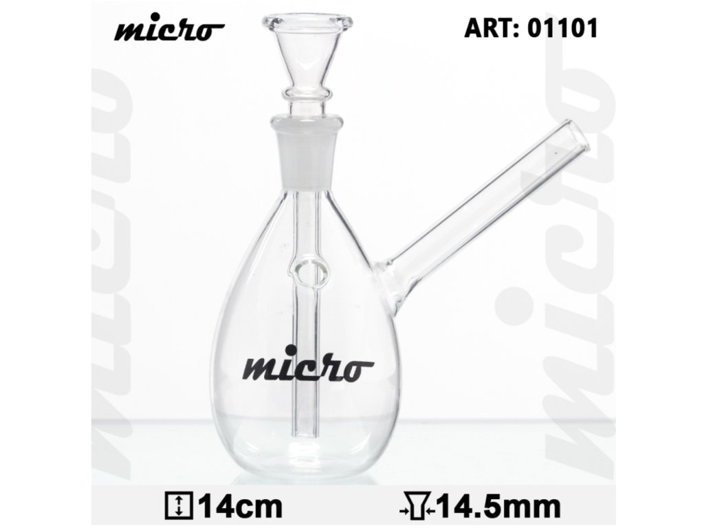 S logem Micro na přední straně hlavní komory je tento mini bong doplněn náustkem s postranním náustkem.