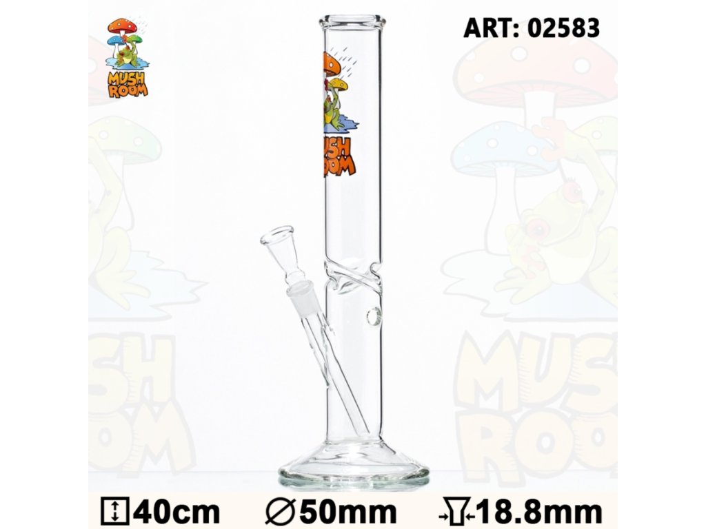 Tento skleněný bong Mushroom with Frog je nádherné skleněné umělecké dílo, které vám nabídne vynikající zážitek z kouření. Má tvar duté základní trubice o průměru 50 mm a výšce 40 cm. Dodává se s objímkou o průměru 18,8 mm, která se připojuje k misce pro umístění bylinek nebo tabáku. Součástí je také zkroucená skleněná struna, která rozdělí kouř, a otvor ve výšce objímky, který vám nabídne alternativní úhel potahu. Logo Mushroom With Frog se nachází na horní části trubice, která končí v útulném náustku.