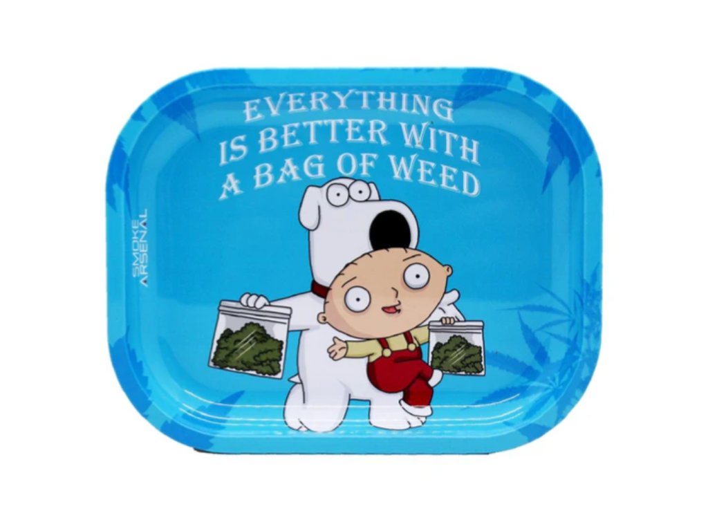 Vylepšete si zážitek z rolování s rolovacími vozíky Smoke Arsenal Small Mixed Designs. Tyto vozíky jsou vyrobeny z vysoce kvalitního kovu a vyznačují se živými a zábavnými designy, včetně oblíbených postaviček, jako jsou Brian a Stewie z Griffinů . Jsou ideální pro dodání osobitého stylu vaší rolovací stanici. Jsou odolné i stylové, což z nich dělá nezbytnost pro každého nadšence. Ať už jste doma nebo na cestách, tyto vozíky udrží vaše nezbytnosti úhledně na svém místě, zatímco se rolujete stylově.