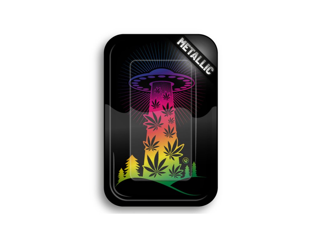 Metal tray „420 UFO Gradient Metallic“ vyniká svým pestrobarevným metalickým designem a pevnou kovovou konstrukcí. S dostatečně velkým prostorem je ideální pro snadnou a čistou přípravu. Odolný povrch zaručuje dlouhou životnost, ať už ho používáte doma nebo na cestách.