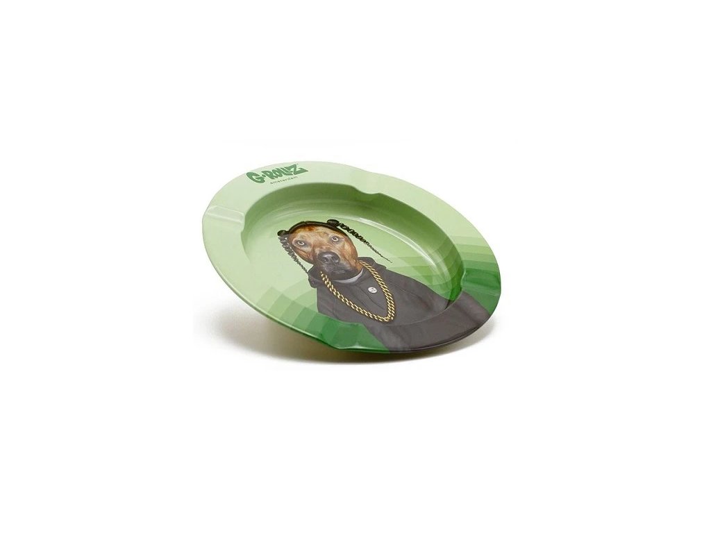Stylový kovový popelník, který zaujme originálním designem psa s copánky a zlatým řetězem na zeleném pozadí. Perfektní pro ty, kteří chtějí mít svého chlupatého kámoše po ruce při každém kouření.
