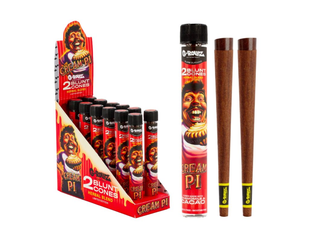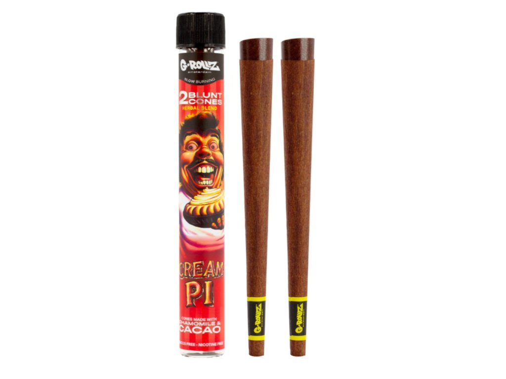 Zahal se do sladké a smetanové vůně s Blunty G-Rollz 'Cream Pi'. Tyto konopné blunty jsou napuštěné terpeny a vyrobené z přírodní směsi yerba maté, heřmánku a kakaa, díky čemuž hoří rovnoměrně a chutnají naprosto božsky – bez tabáku a bez nikotinu.