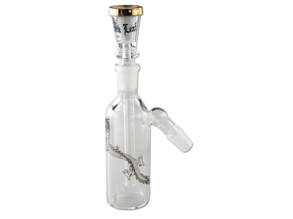 Krásný dvoudílný předchladič/lapač popela ze série GTI GOLDEN DRAGON od Black Leaf® . Drak se zlatými hroty zdobí také borosilikátový skleněný předchladič. Předchladič je vybaven kompletním chillumem (včetně misky), který má relativně velkou kapacitu a luxusní zlatý okraj.